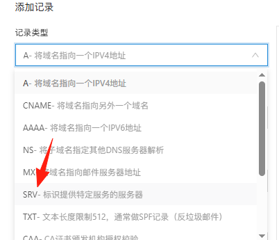 前置工作你有一个域名,没有去大厂1元薅一个srv解析不做过多赘述进入DNS...